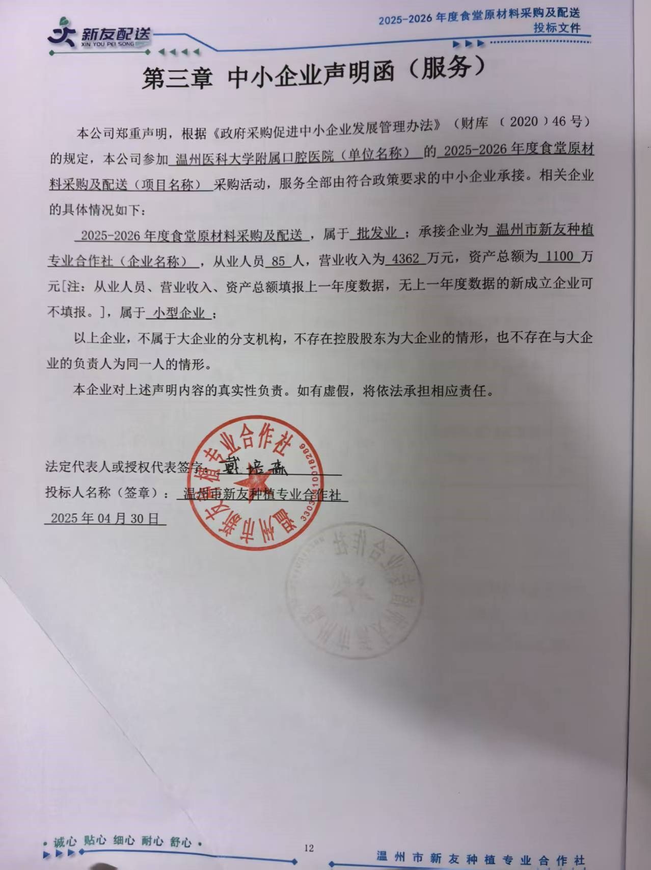 1 | 2025-2026年度食堂原材料采购及配送 | 1 | 年 | 518914.68 | 70% | 温州市新友种植专业合作社 | 浙江省温州市瓯海区梧田街道大鹏路6号第3幢第一层 | 93330304325523117T |